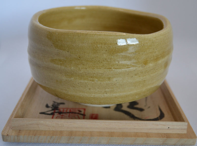 Die Chawan-Teeschale zählt zu den wichtigsten Utensilien bei der japanischen Teezeremonie "Chado". Einzelstück, handgetöpfert Herkunftsland: Japan, Präfektur Aichi Hersteller: Seto-Yaki Alter: unbekannt Material: Keramik mit signierter Holzbox Farbe: braun Größe: 14 x 12,8 cm Zustand: exzellent
